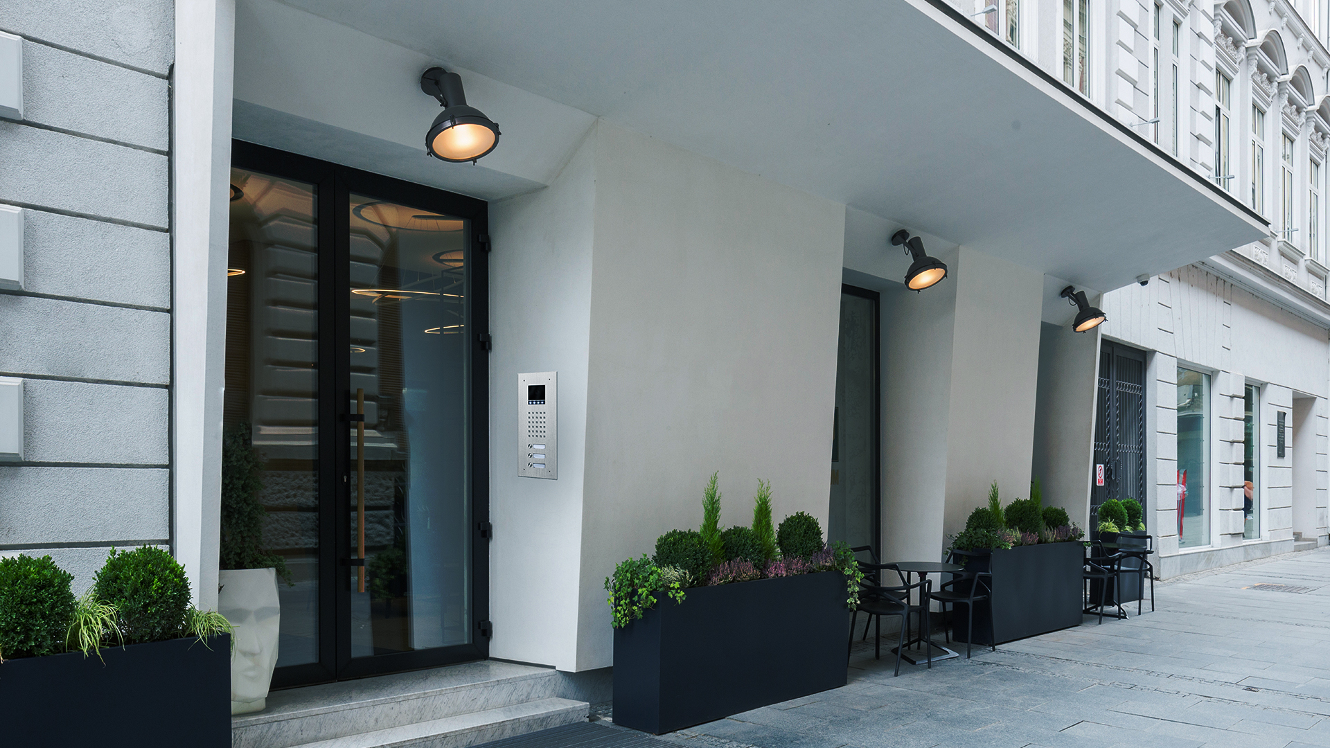 Clear two-way communication with visitors at entry points. Available in flush or surface-mount formats with optional app integration.